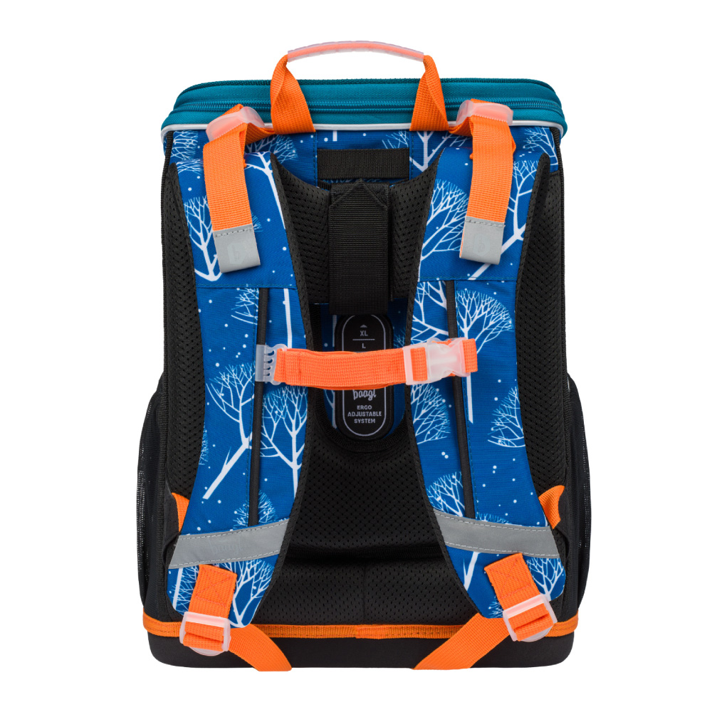• System przesuwnego panelu tylnego BAAGL ADJUSTABLE SYSTEM umożliwia dostosowanie optymalnej pozycji szelek, w stosunku do wzrostu dziecka.