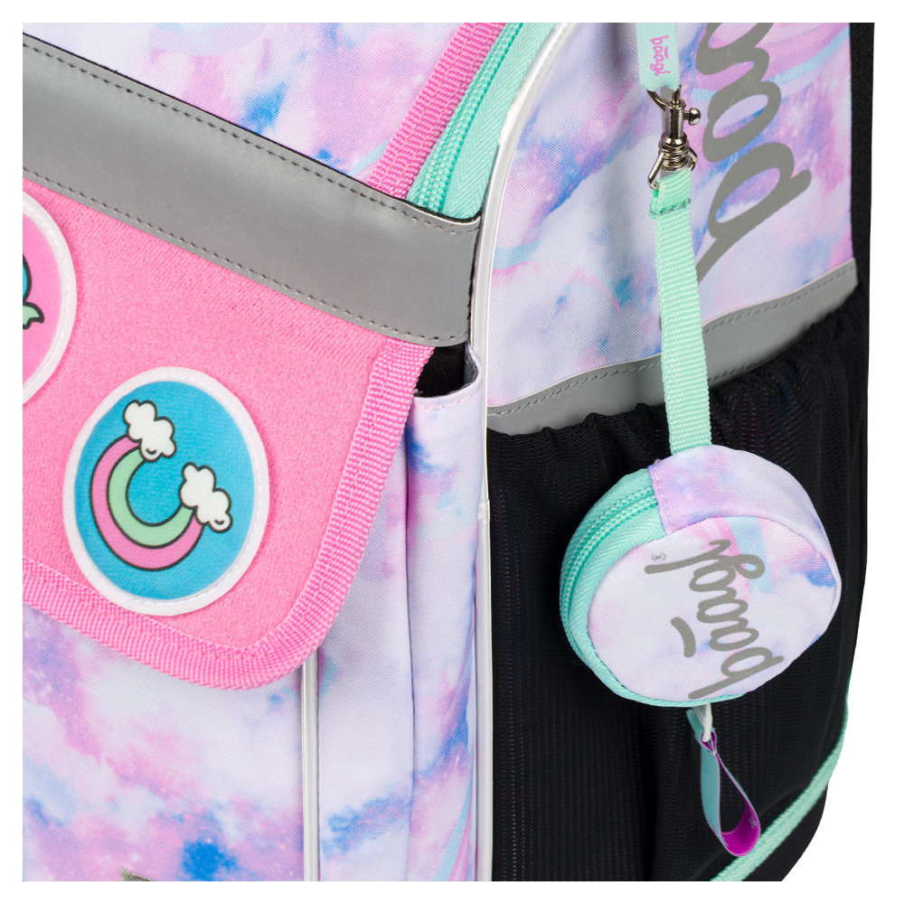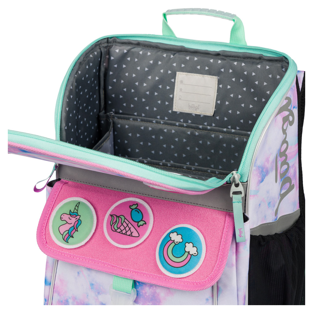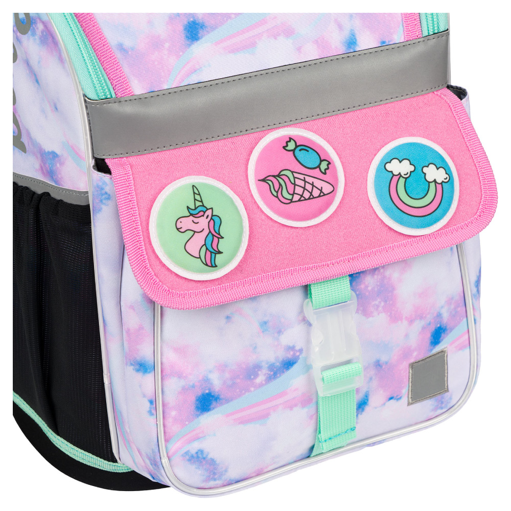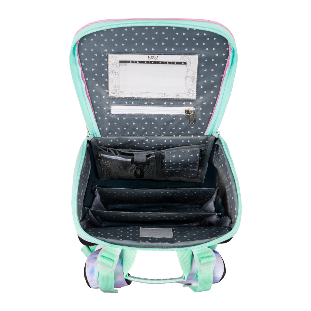 • Wewnątrz tornistra znajduje się przezroczysta kieszeń z planem zajęć i wewnętrznym organizerem, dla równomiernego rozłożenia ciężaru, wraz z elastyczną gumką.