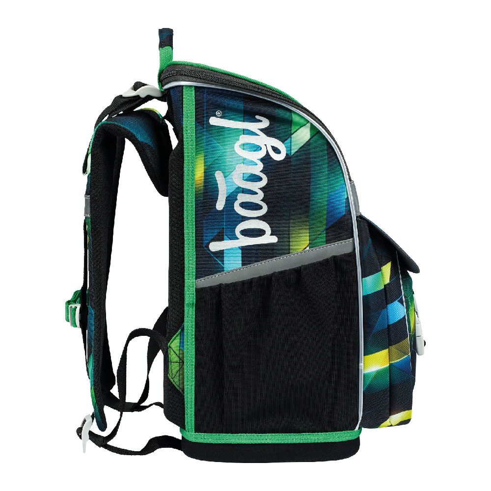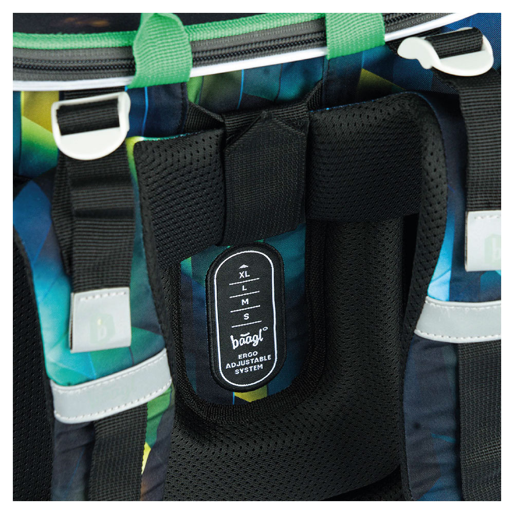 • System przesuwnego panelu tylnego BAAGL ADJUSTABLE SYSTEM umożliwia dostosowanie optymalnej pozycji szelek, w stosunku do wzrostu dziecka.
