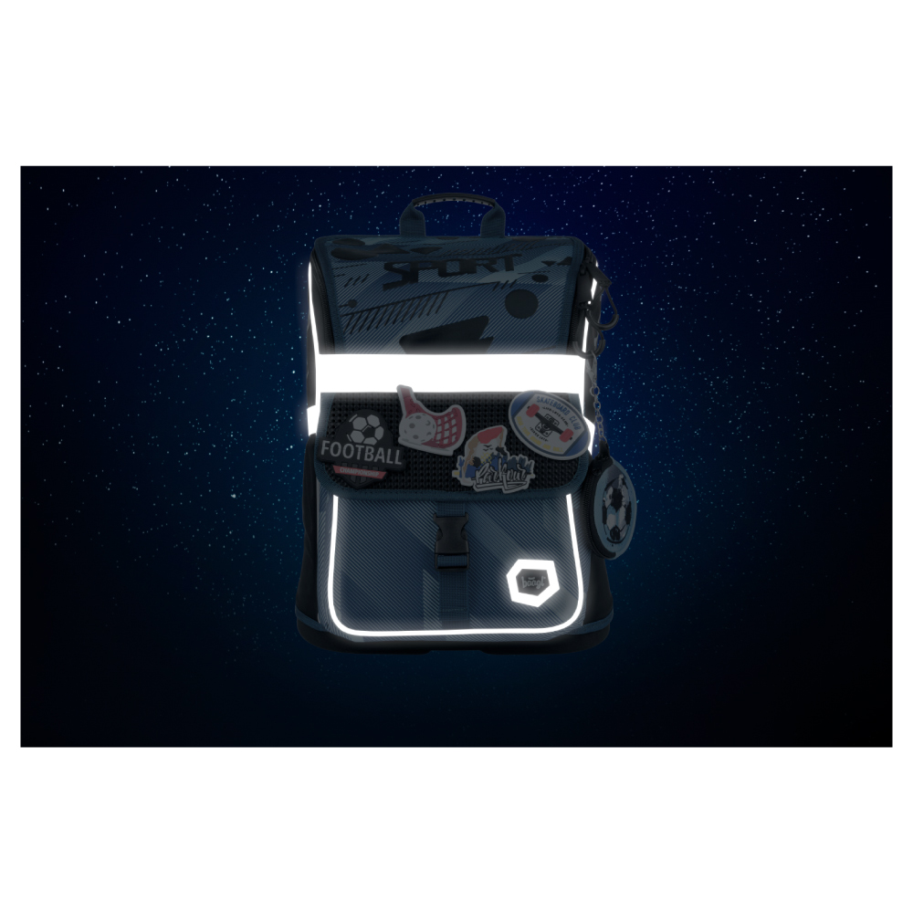 • Plecak jest wyposażony w praktyczny portfel, elementy odblaskowe i wymienne elementy ozdobne.