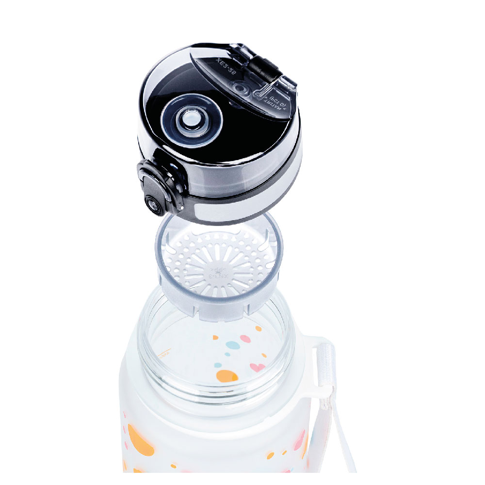 • Butelka zawiera również sitko, dzięki któremu można wykorzystać butelkę do lemoniady z owocami lub herbaty (materiał nadaje się również do gorących napojów).