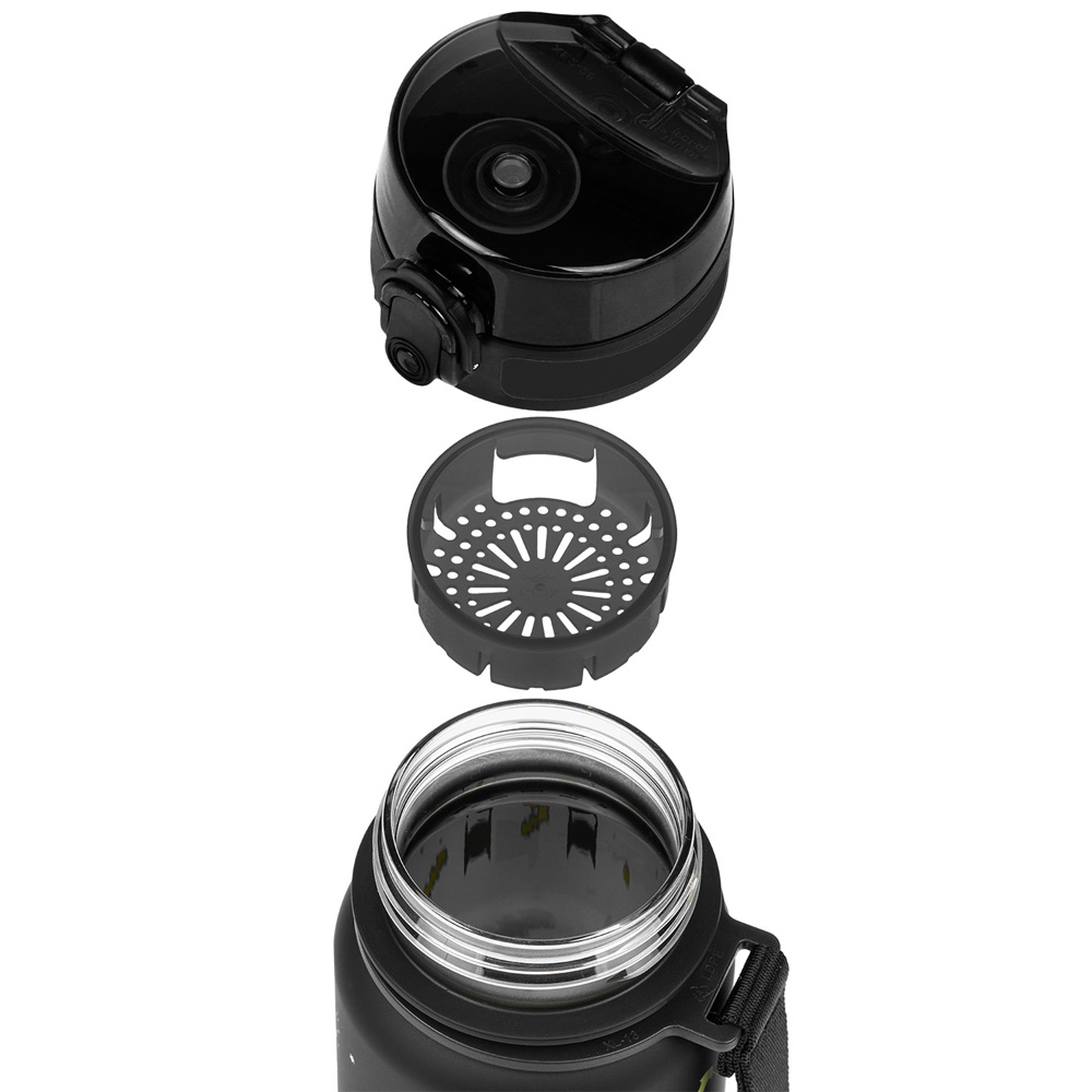 • Butelka zawiera również sitko, dzięki któremu można wykorzystać butelkę do lemoniady z owocami lub herbaty (materiał nadaje się również do gorących napojów).