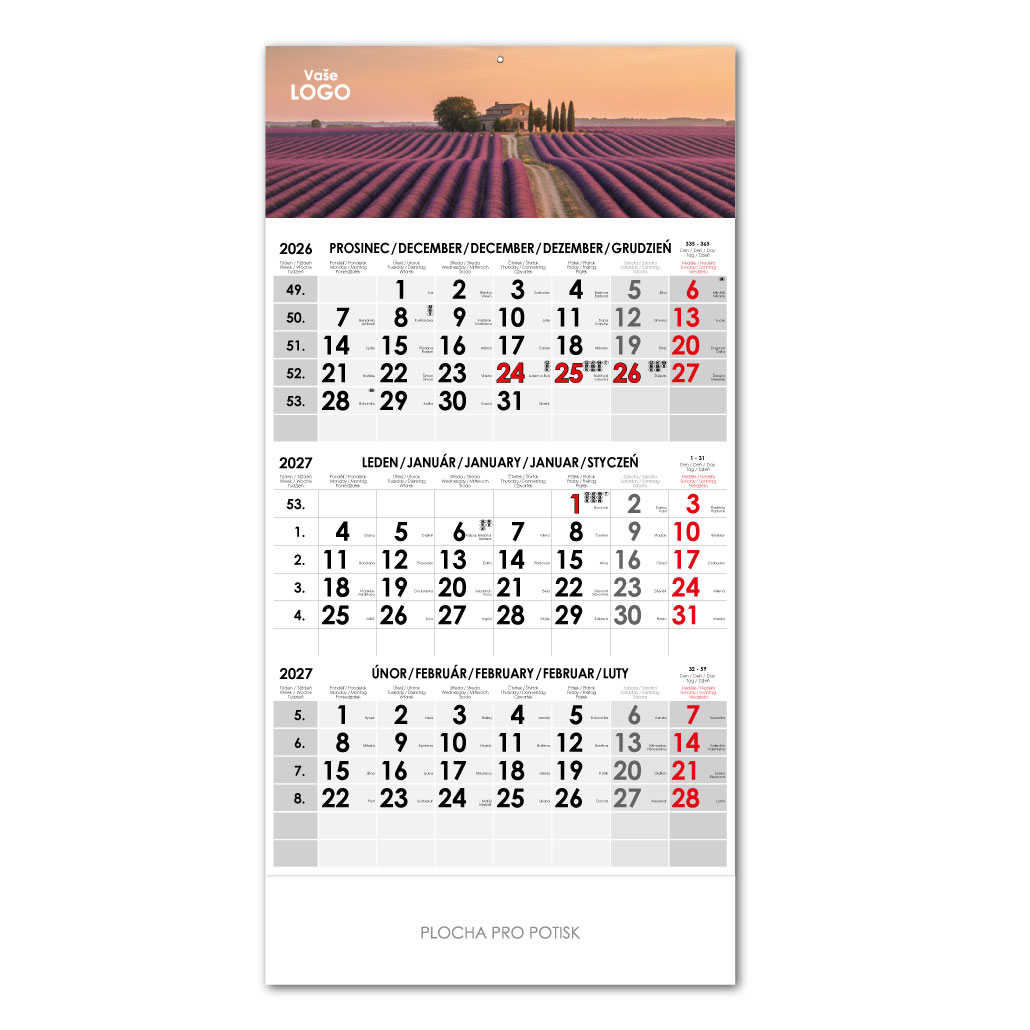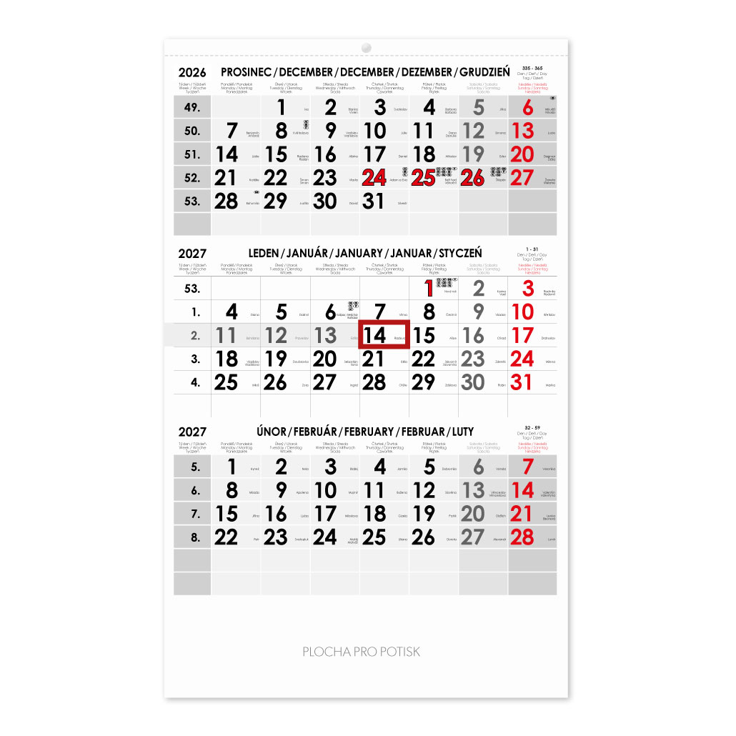 Trzymiesięczny kalendarz Trio czeski 2027 - szary