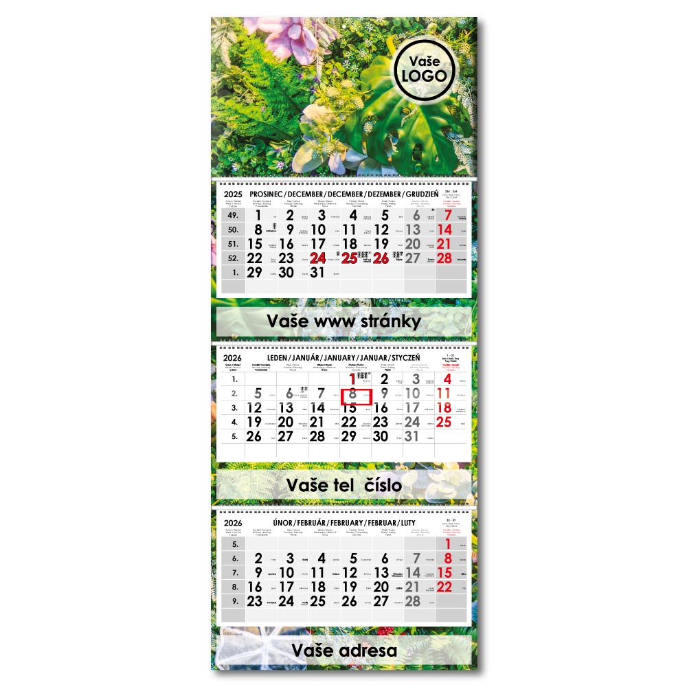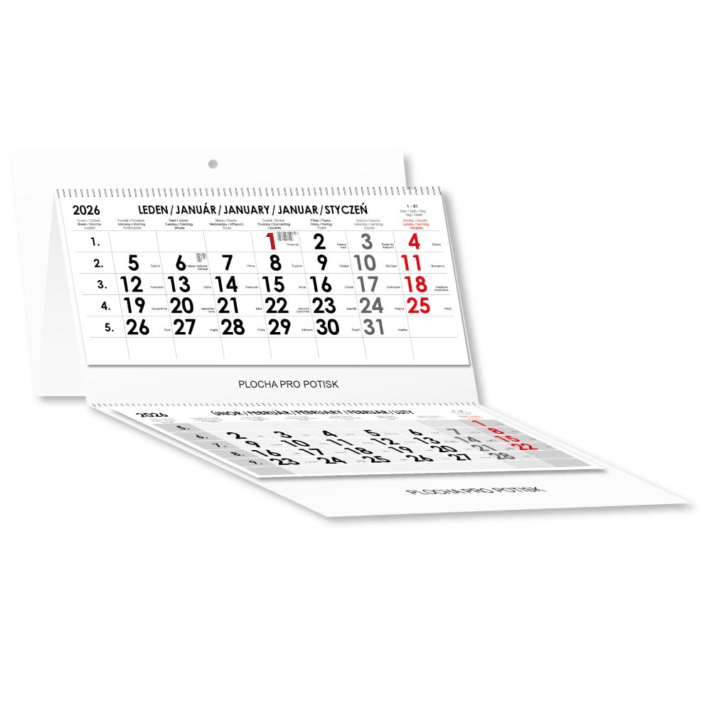 Trzymiesięczny kalendarz Trio składany czeski ze spiralą 2026 - szary