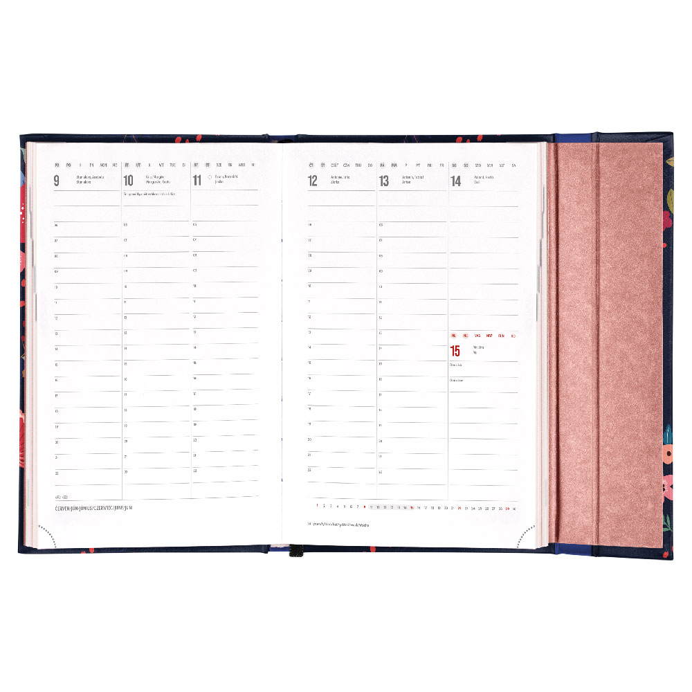 Tygodniowy kalendarz książkowy 2025 A5 magnetyczny Niebieskie kwiaty
