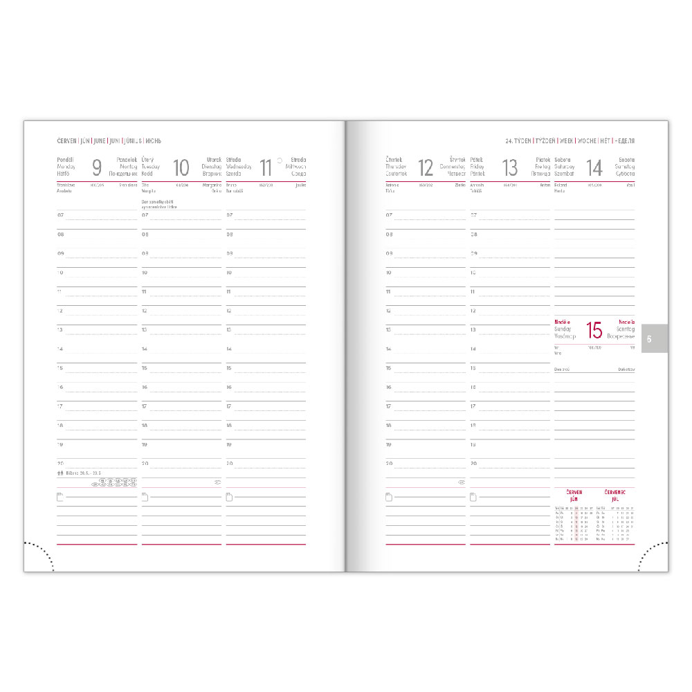 Kalendarz: 6-języczne dzienne od grudnia 2024 (CZ, SK, GB, DE, HU, RU)