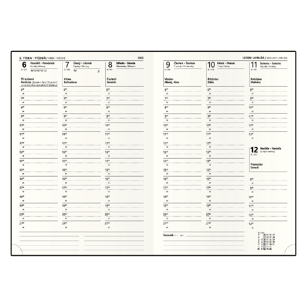Kalendarz: tygodniowy nominalny czeski i słowacki