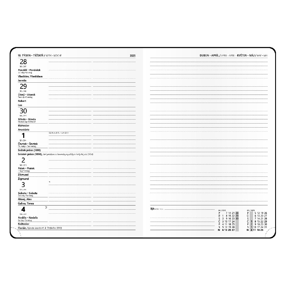 Kalendarz: tygodniowy nominalny czeski i słowacki