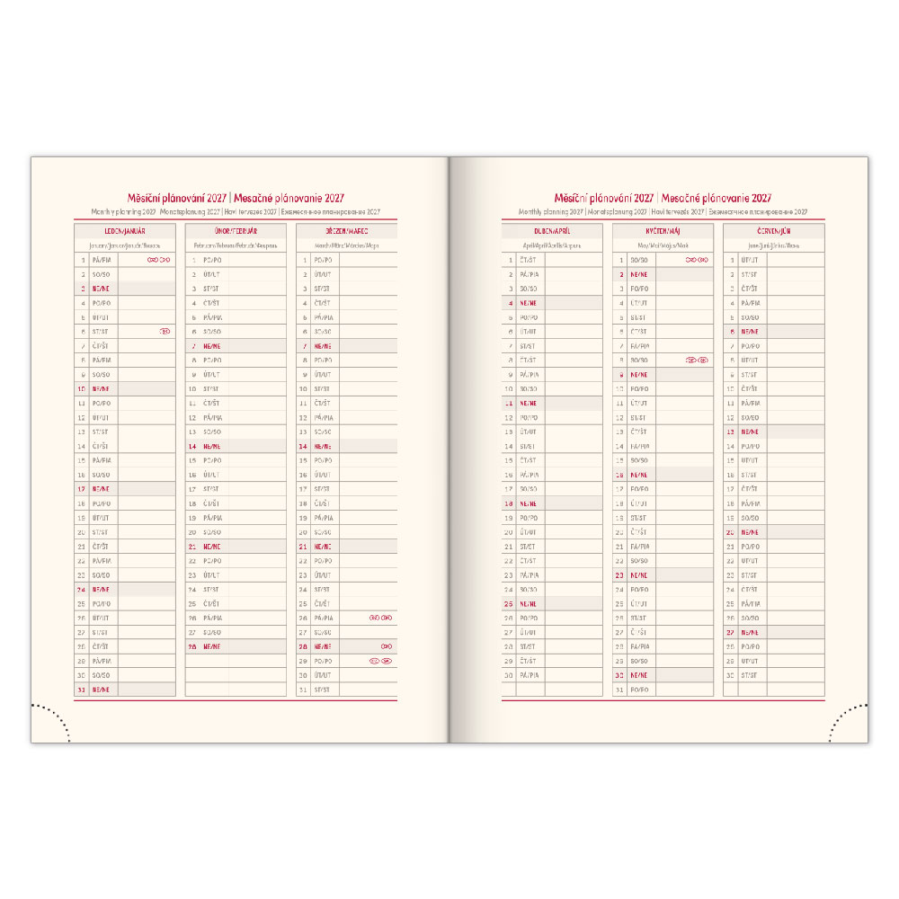 W dzienniku znajdują się: miejsce na dane osobowe, planowanie miesięczne na rok 2026 i 2027,