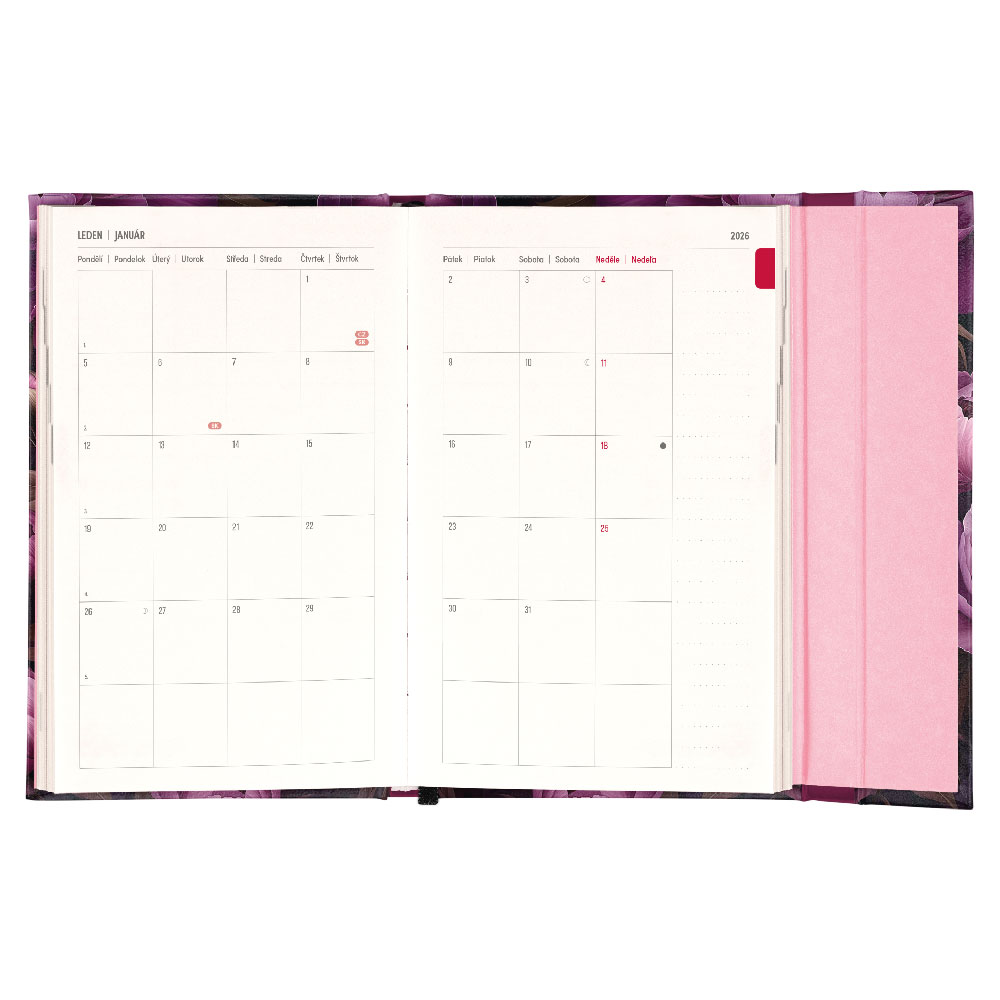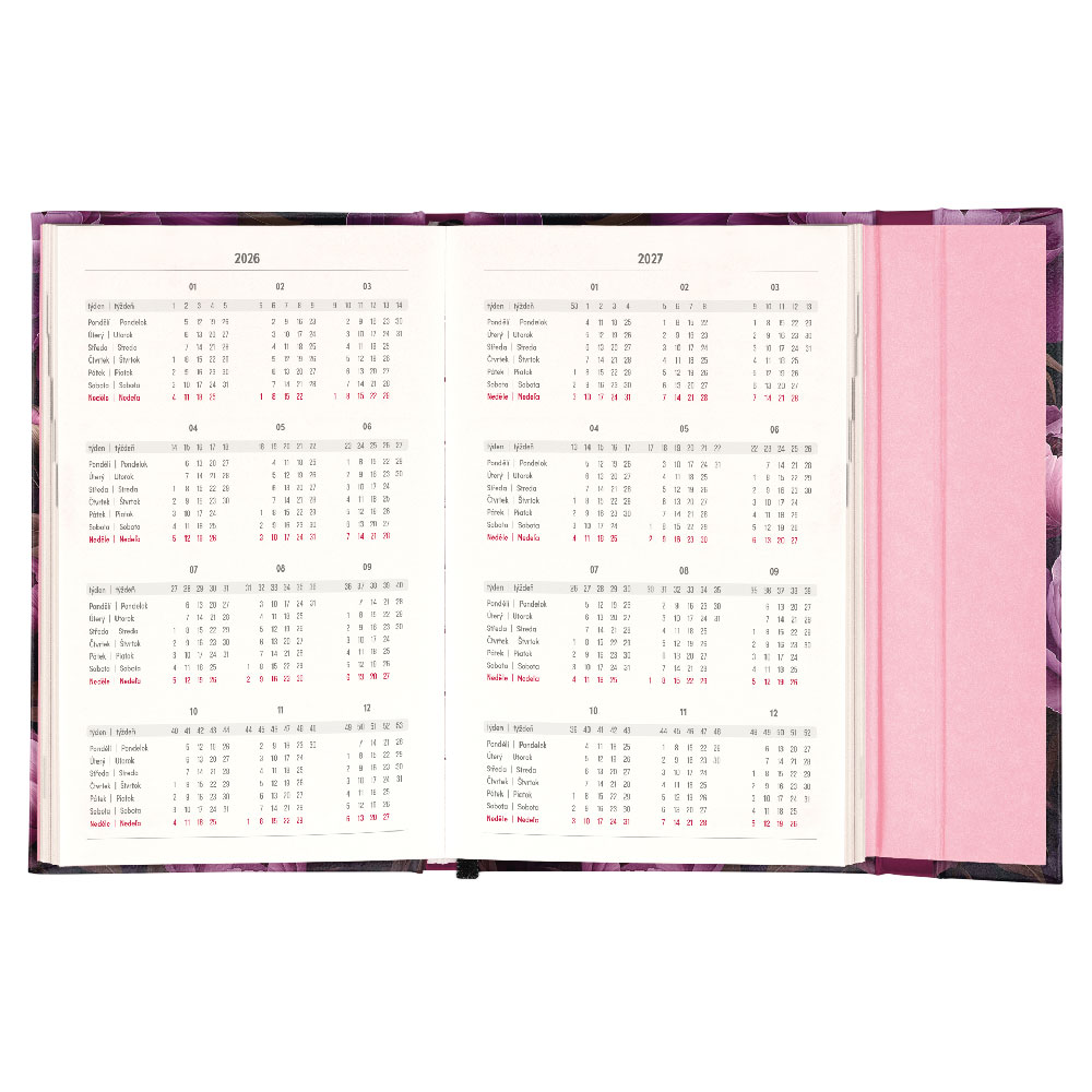 Tygodniowy kalendarz książkowy 2026 A5 magnetyczny Fioletowe kwiaty