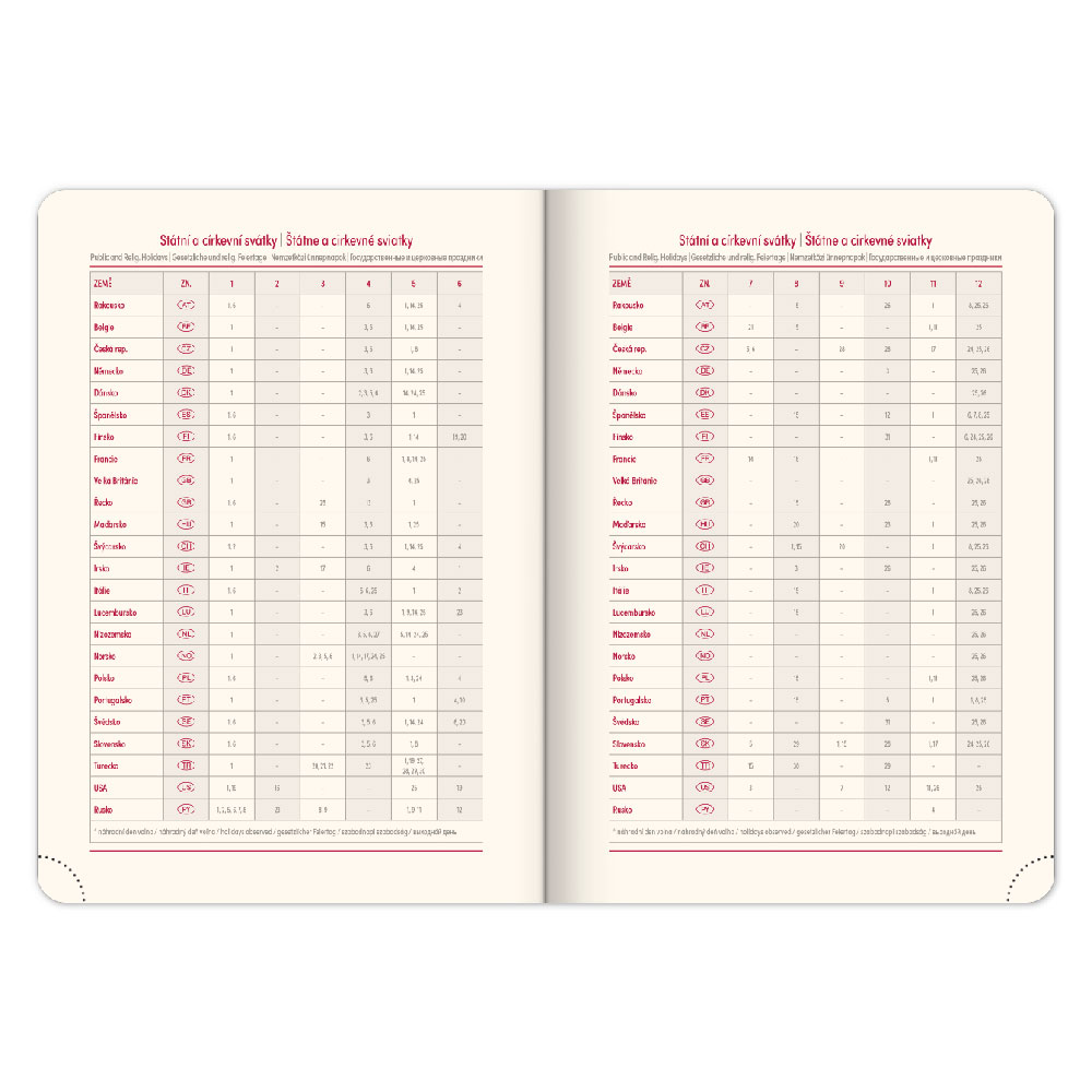 Kalendarz: tygodniowy w 6 językach (CZ, SK, EN, DE, HU, RU)