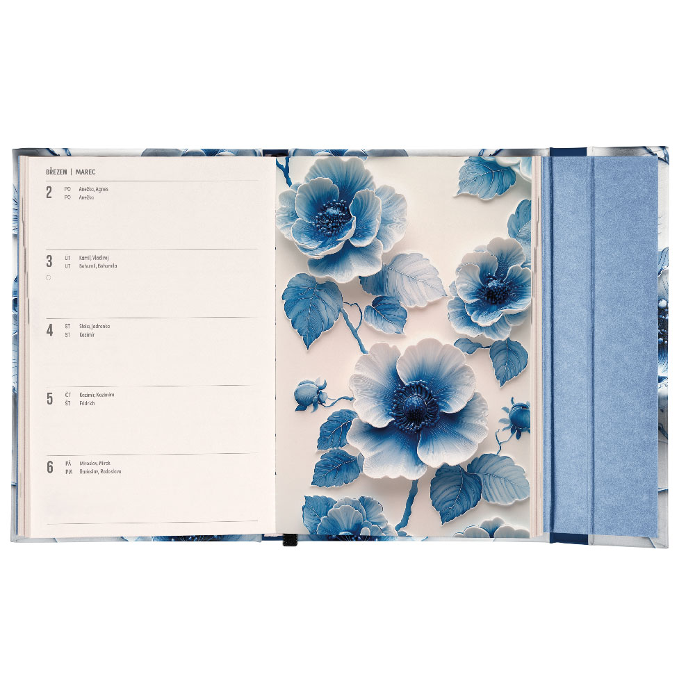 Tygodniowy kalendarz książkowy 2026 B6 magnetyczny Kwiat porcelanowy
