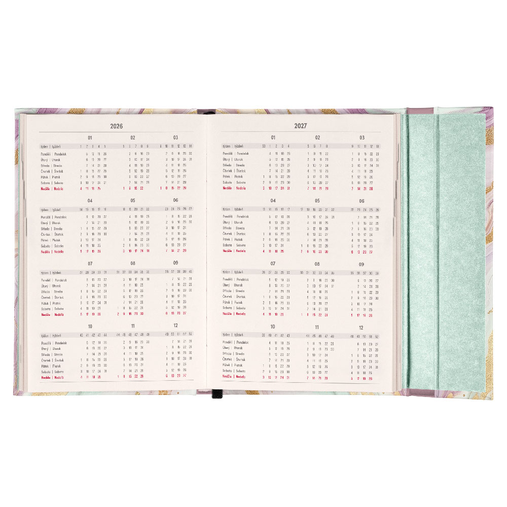 Tygodniowy kalendarz książkowy 2026 B6 magnetyczny Marmur różowy