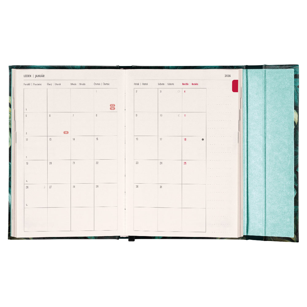 Tygodniowy kalendarz książkowy 2026 B6 magnetyczny Monstera