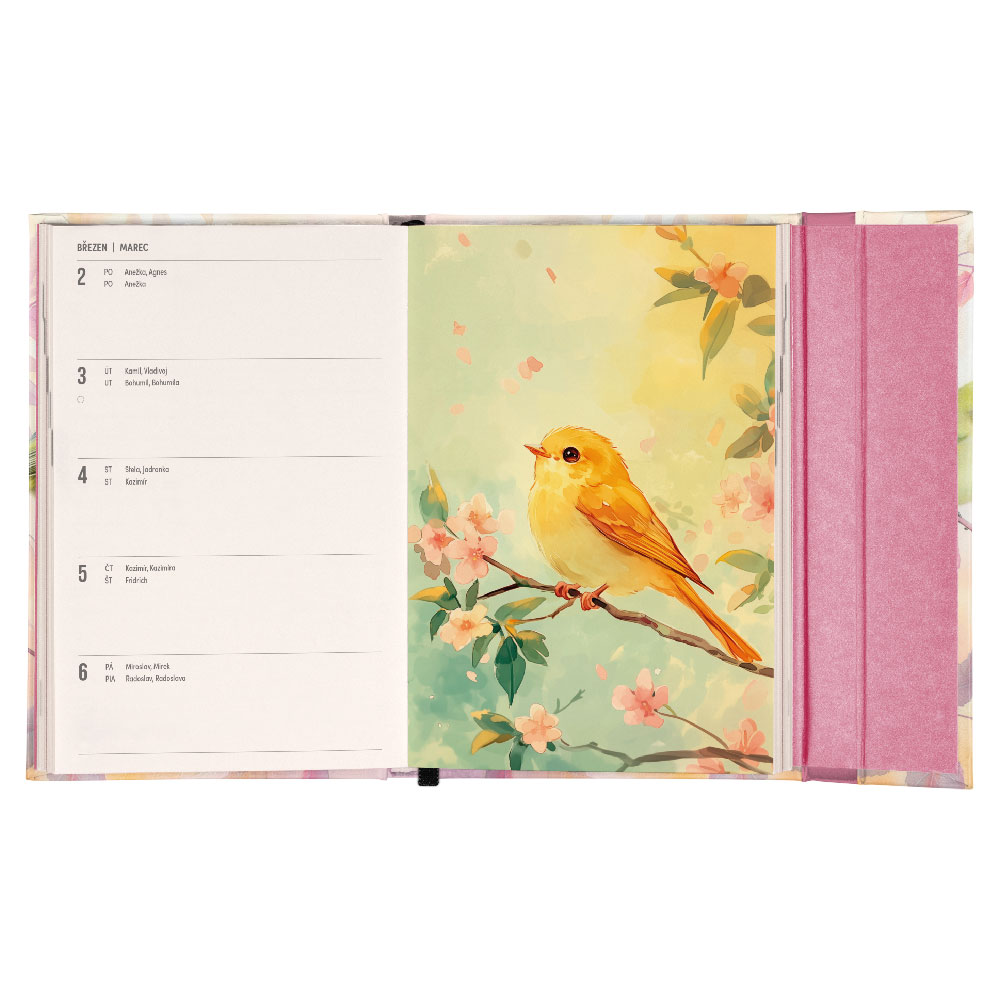 Tygodniowy kalendarz książkowy 2026 B6 magnetyczny Ptaki