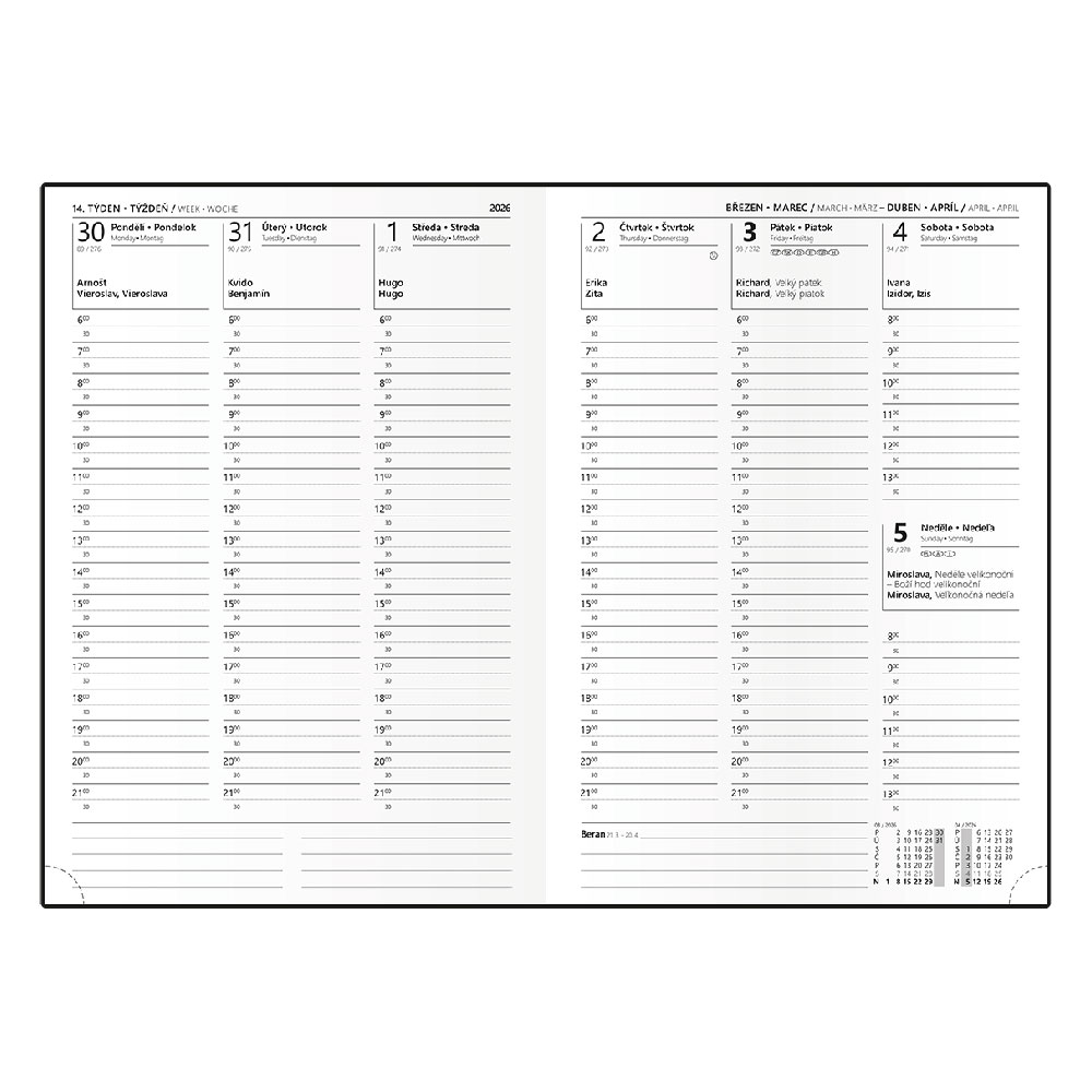 Tygodniowy kalendarz książkowy 2026 Oskar Deny A5 - czarny