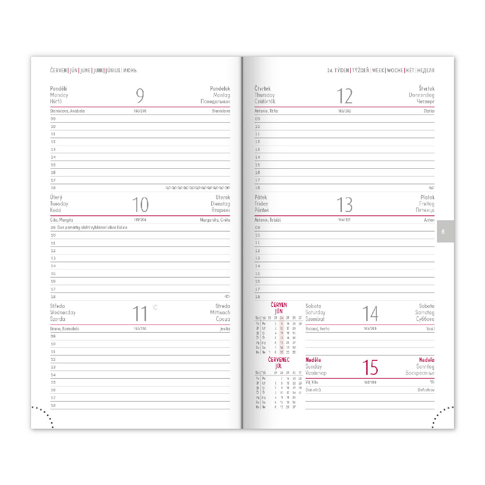 Kalendarium: 6-języczne tygodniowe od grudnia 2024 (CZ, SK, GB, DE, HU, RU)