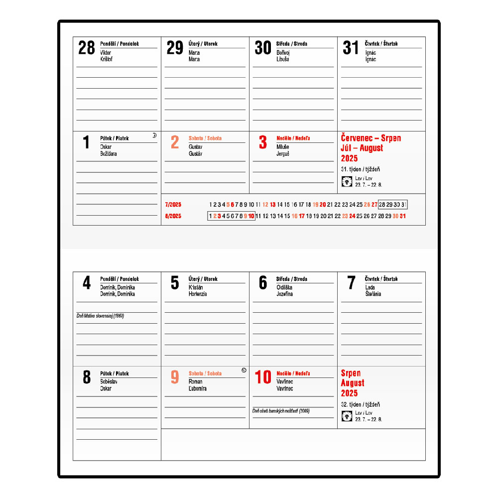 Kalendarz: tygodniowy nominalny czeski i słowacki