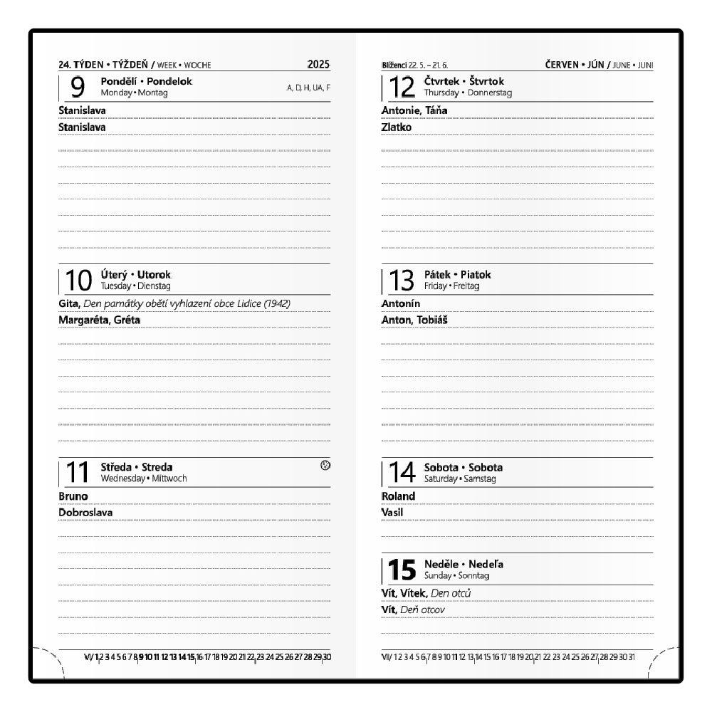 Kalendarz: tygodniowy nominalny czeski i słowacki