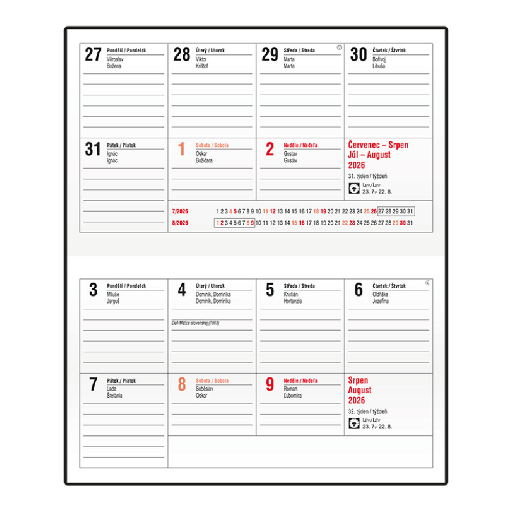 Kalendarz: tygodniowy nominalny czeski i słowacki