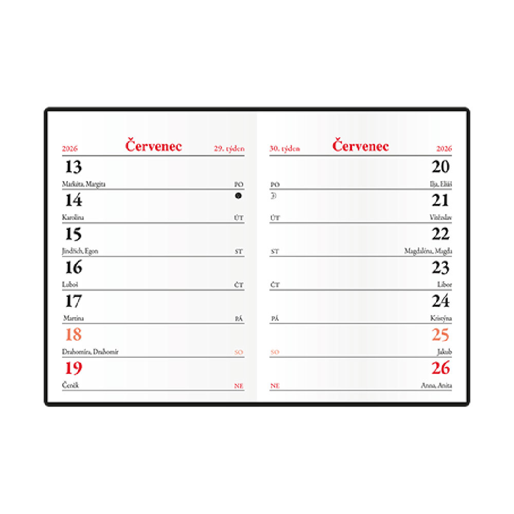Tygodniowy kalendarz książkowy kieszonkowy 2026 Hynek PVC - bordowy