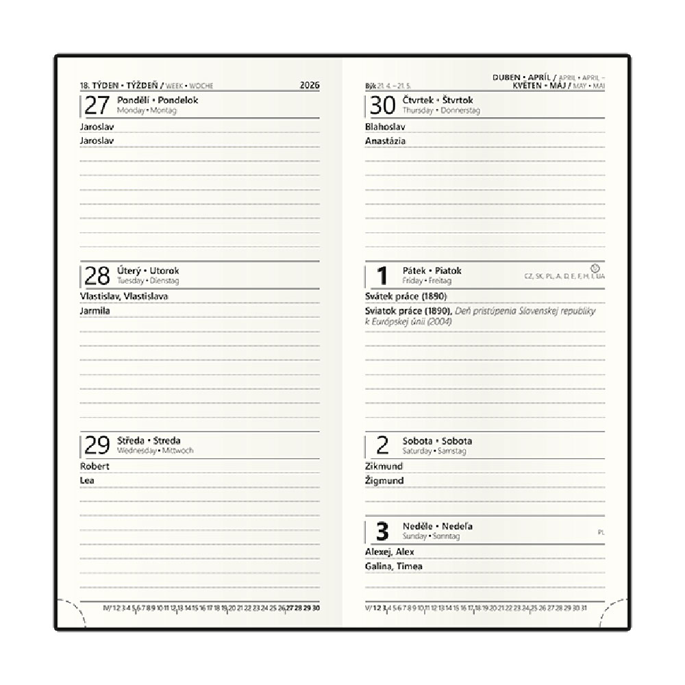Kalendarz: tygodniowy nominalny czeski i słowacki