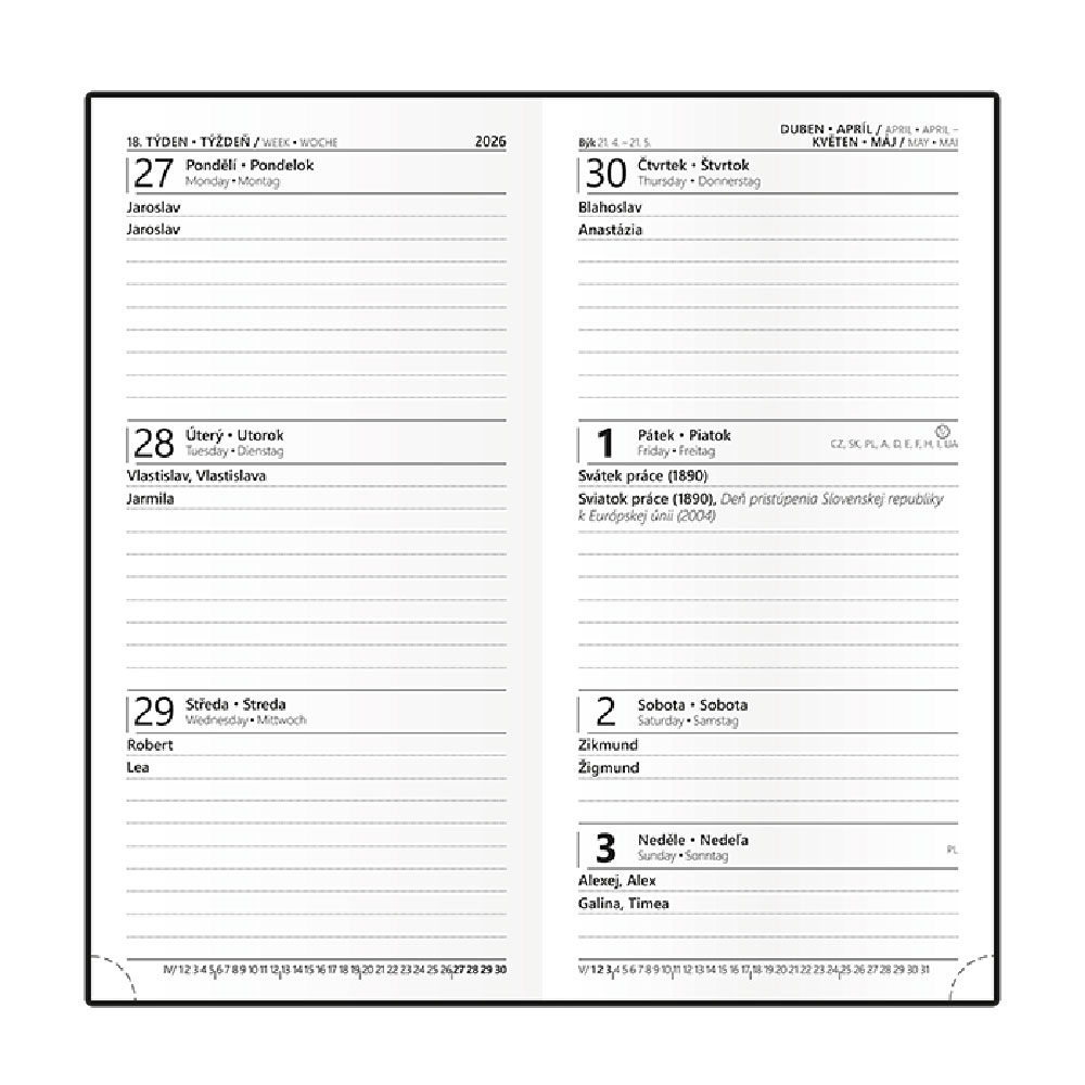 Kalendarz: tygodniowy nominalny czeski i słowacki
