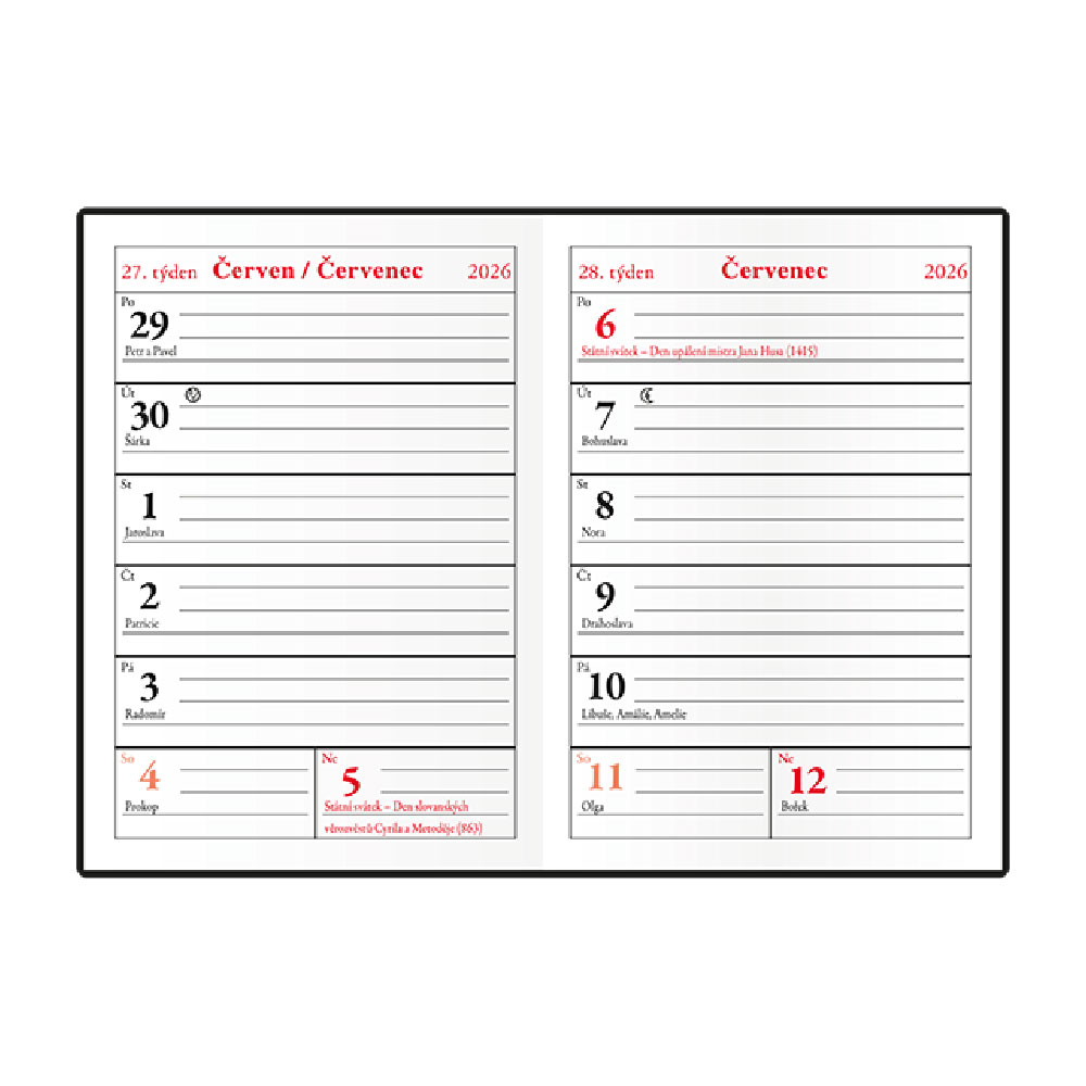 Kalendarz: tygodniowa nazwa czeska