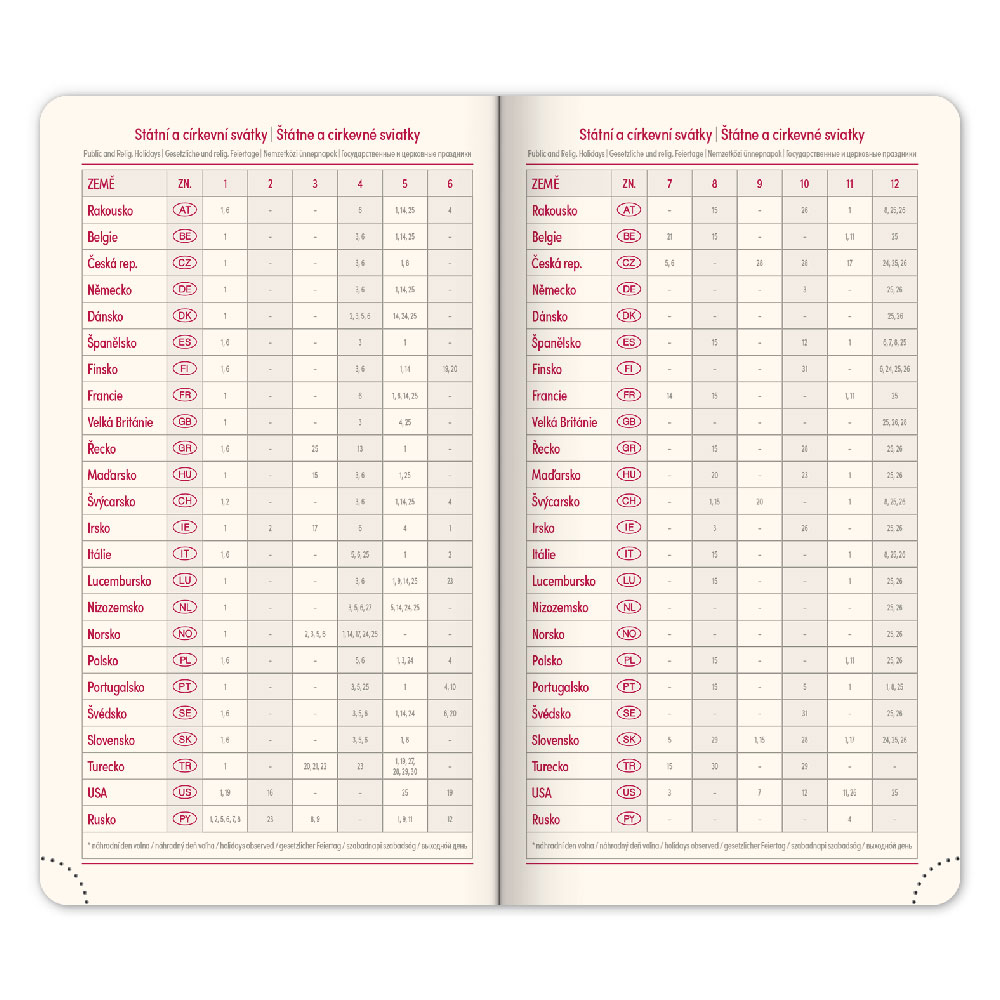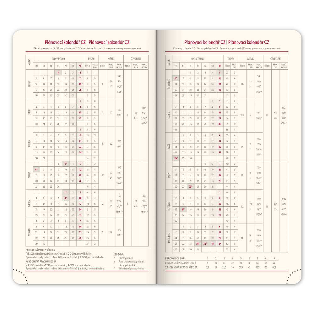 Kalendarz: tygodniowy w 6 językach (CZ, SK, EN, DE, HU, RU)