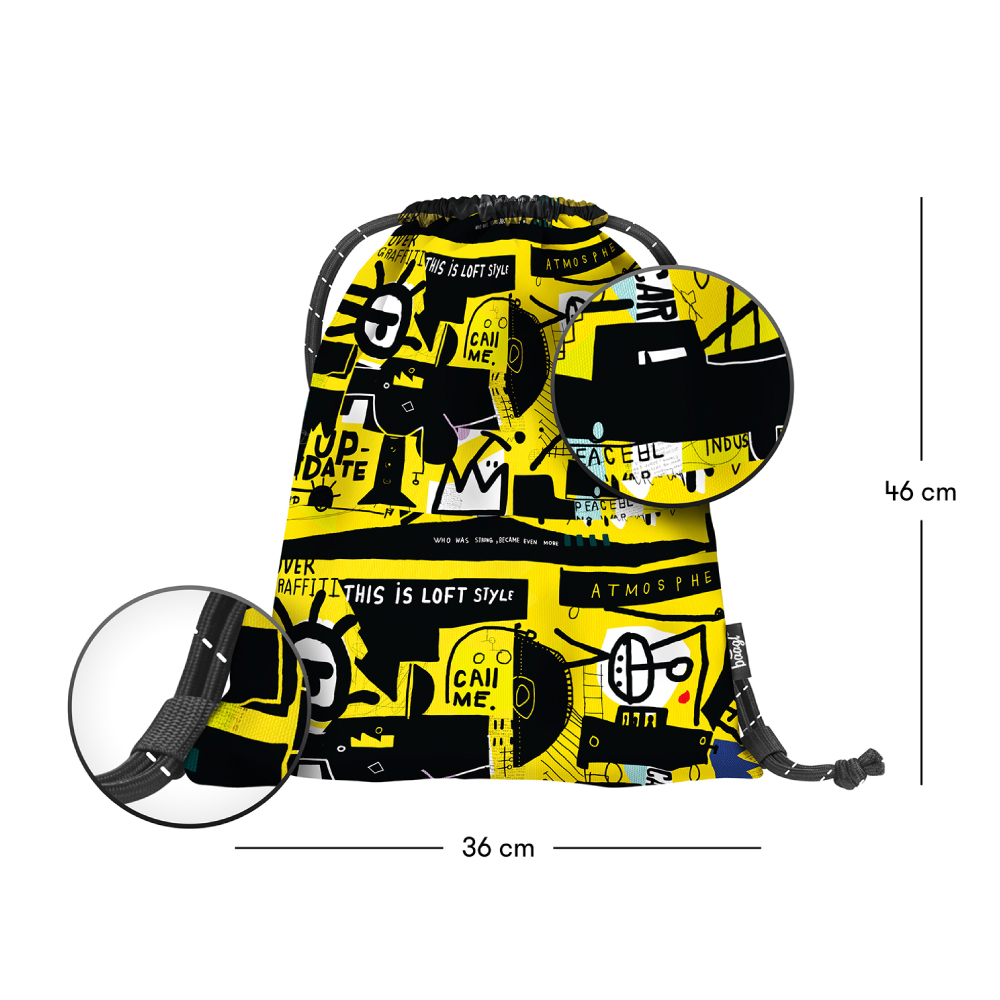 • Sznurki można wykorzystać do noszenia worka na plecach.